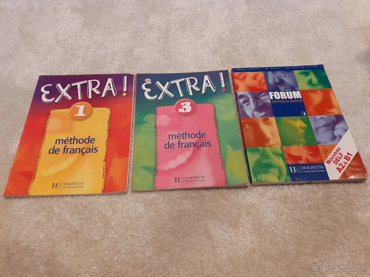 Učebnice francouzštiny. Extra 1 za 70 Kč (popsaná), zbylé dvě kus za 90 Kč.