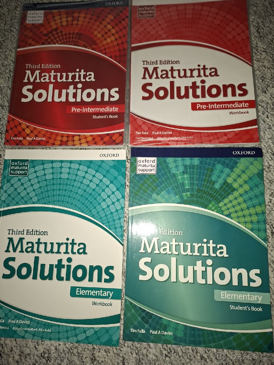 Maturita Solutions 2x učebnice 2x sešit, cca třetina/polovina vyplněna u všech - 100,- za vše