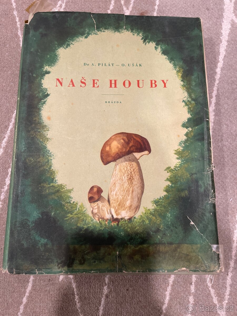 Kniha Naše houby od Alberta Piláta. 1.vydání rok 1952. Nakladatelství Brázda. Kniha má potrhanou obálku, pod obálkou lehce vybledlá ale bez skvrn, stránky nepotrhané a bez stařeckých skvrn, vazba drží a nelupe a listy nepadají. Cena + pošta