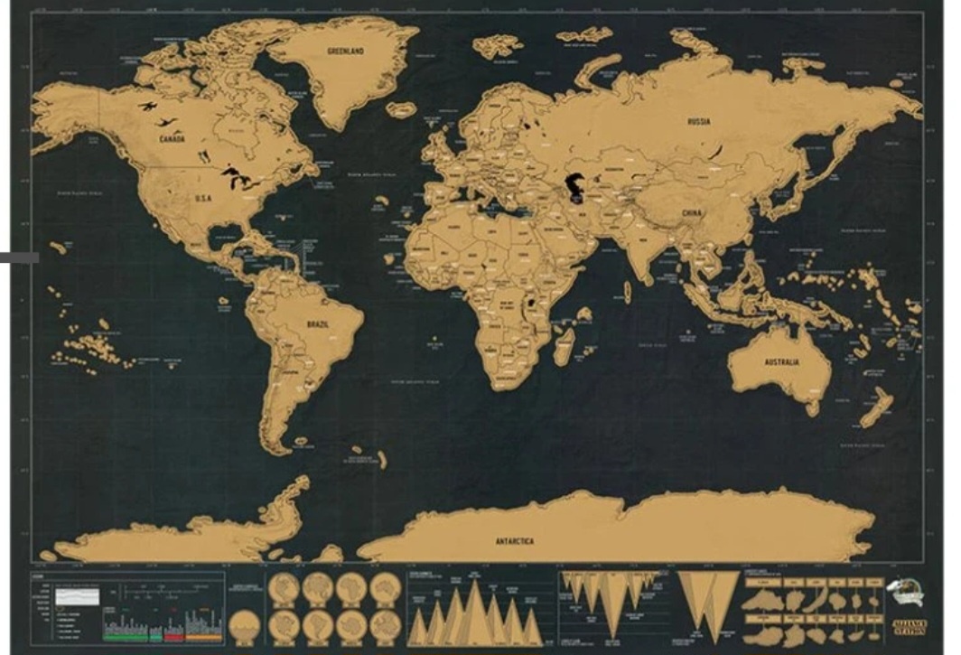 Prodám stírací mapu světa - nová, nevhodný dárek