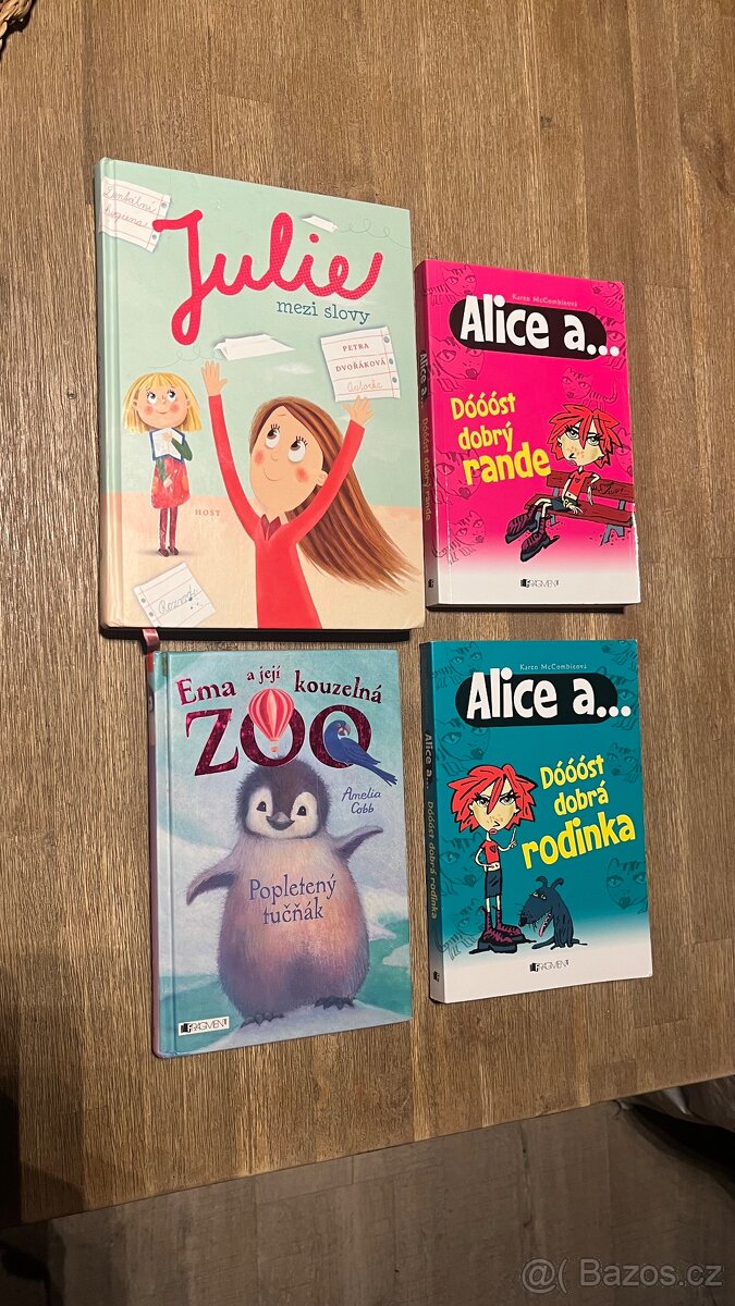 Všechny kupovaný nový. Julie mezi slovy, Alice a dost dobrá rodinka, Alice a dost dobrý rande, Ema a její kouzelná zoo, Matylda, pochybná kouzla pro cynické čarodějky, Družička k pronájmu, první slzy. Pouze v celku! Možnost osobního předání na trase Tišnov - Brno.