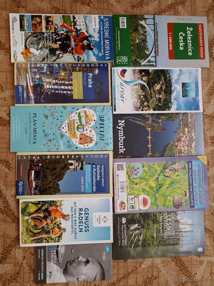 Prodám mapy a cestovní průvodce různého druhu. Cena za kus je 30 Kč.