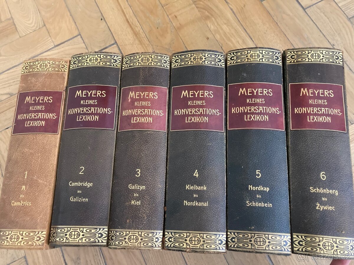 Prodám kompletní MEYERS KLEINES KONVERSATIONS LEXIKON, všech 6 svazků, obecná encyklopedie v německém jazyce, vydání 1908-1910, v pěkném stavu, osobní odběr Mikulov či Brno