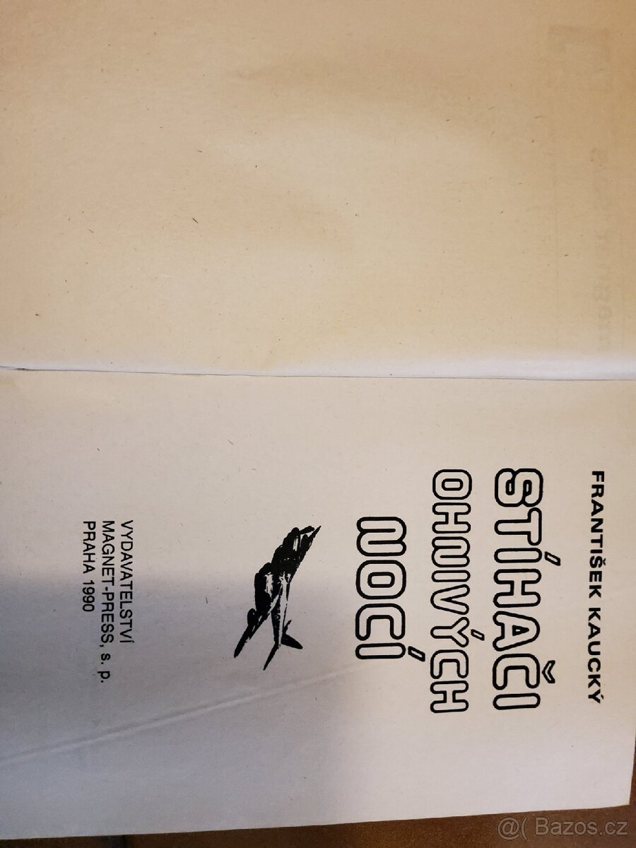 Knížka Františka Kauckého Stíhači ohnivých nocí, nakladatelství Magnet Press Praha, rok vydání 1990, cena 30Kč