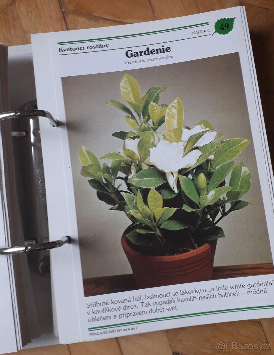 Květinový rejstřík česko-latinsky a latinsko český, rozdělení květin na kvetoucí, zelené, pnoucí, kaktusy-sukulenty, velké hrnkovky a další spousta rad v pěstování, v boji se škůdcí, nápady na umístění. Vše ilustrováno na křídovém papíře.Na každé kartě je popsáno odkud rostlina pochází, jak se o ní starat, umístění, množení, boj se škůdcí. Počet karet: 972 ks. Kompletní sbírka