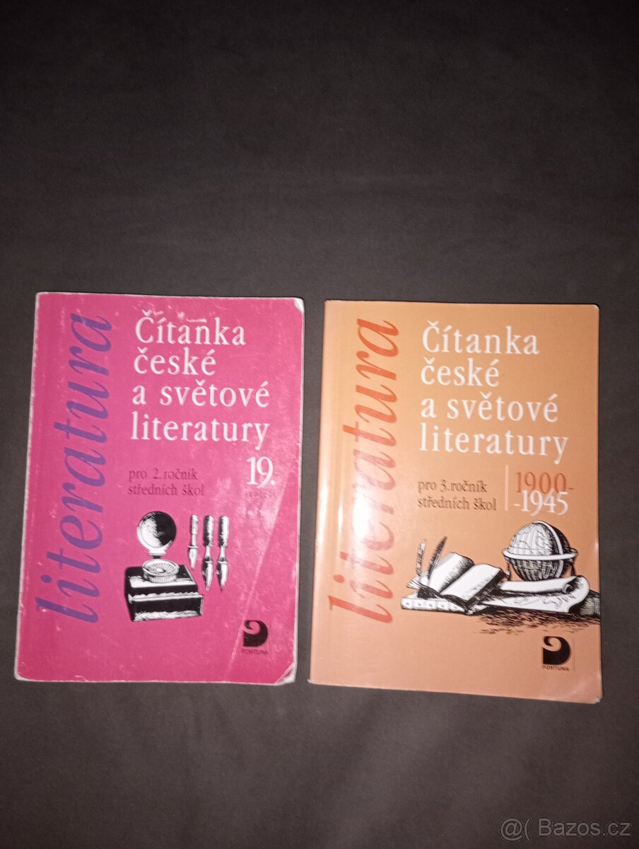 Prodám čítanky, Čítanka české a světové literatury 19. století pro 2. ročník gymnázií a Čítanka české a světové literatury 1900 - 1945 pro 3. ročník gymnázií, Fortuna. Běžné známky opotřebení. Každá za 50 Kč