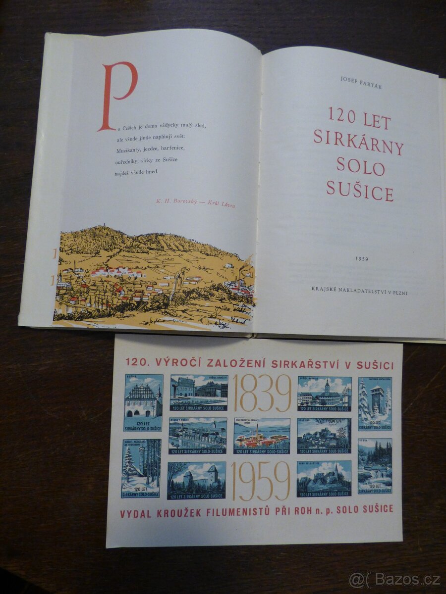 Nabízím knihu, vydanou ke 120 výročí podniku Solo Sušice, spolu s výročními sirkovými nálepkami a menší sbírku starších sirkových krabiček, nejraději vyměním za použité nebo nové cestopisné pohlednice či známky, dobrou čokoládu, apod., ale není podmínkou.