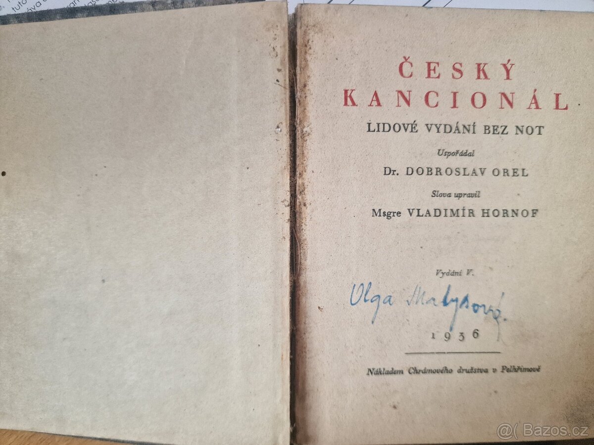 ČESKÝ KANCIONÁL, lidové vydání bez not, 1936, 200 Kč + 70 Kč poštovné.
