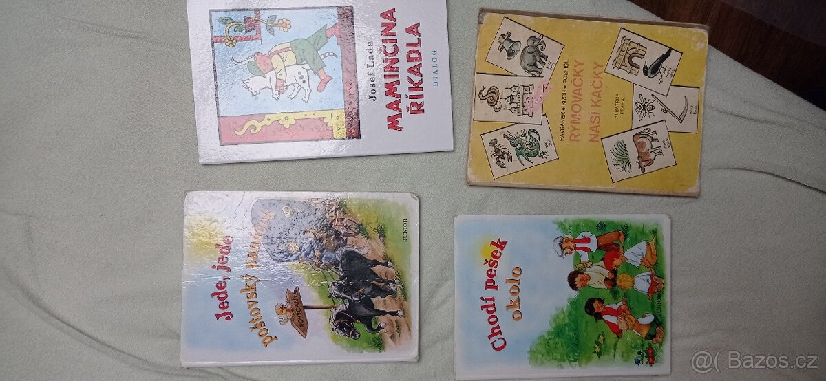 Prodám knihu Chodí Pešek okolo za 75 Kč, jede jede poštovský panáček za 75 Kč, maminčiny říkadla za 119 Kč a rýmovačky zdarma