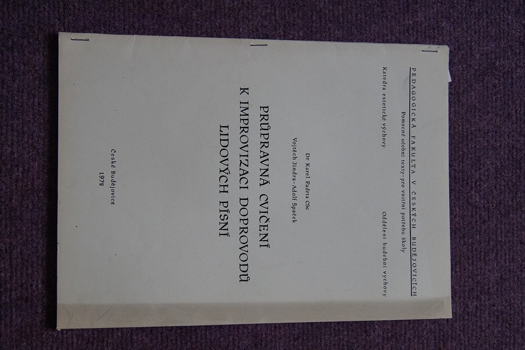 Prodávám zachovalá skripta - Průpravná cvičení k improvizaci doprovodů lidových písní, autorů Karel Padrta, Vojtěch Jindra, Adolf Špaček.